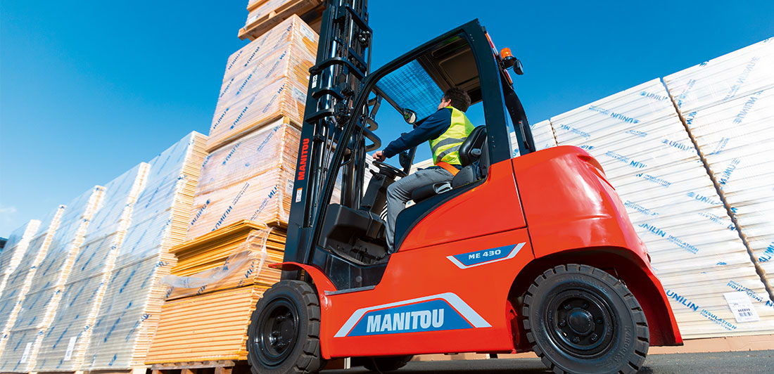 - Manitou ME 316 / ME 420 : chariots électriques idéaux pour une utilisation intérieure, capables de s’adapter ponctuellement à l’extérieur.